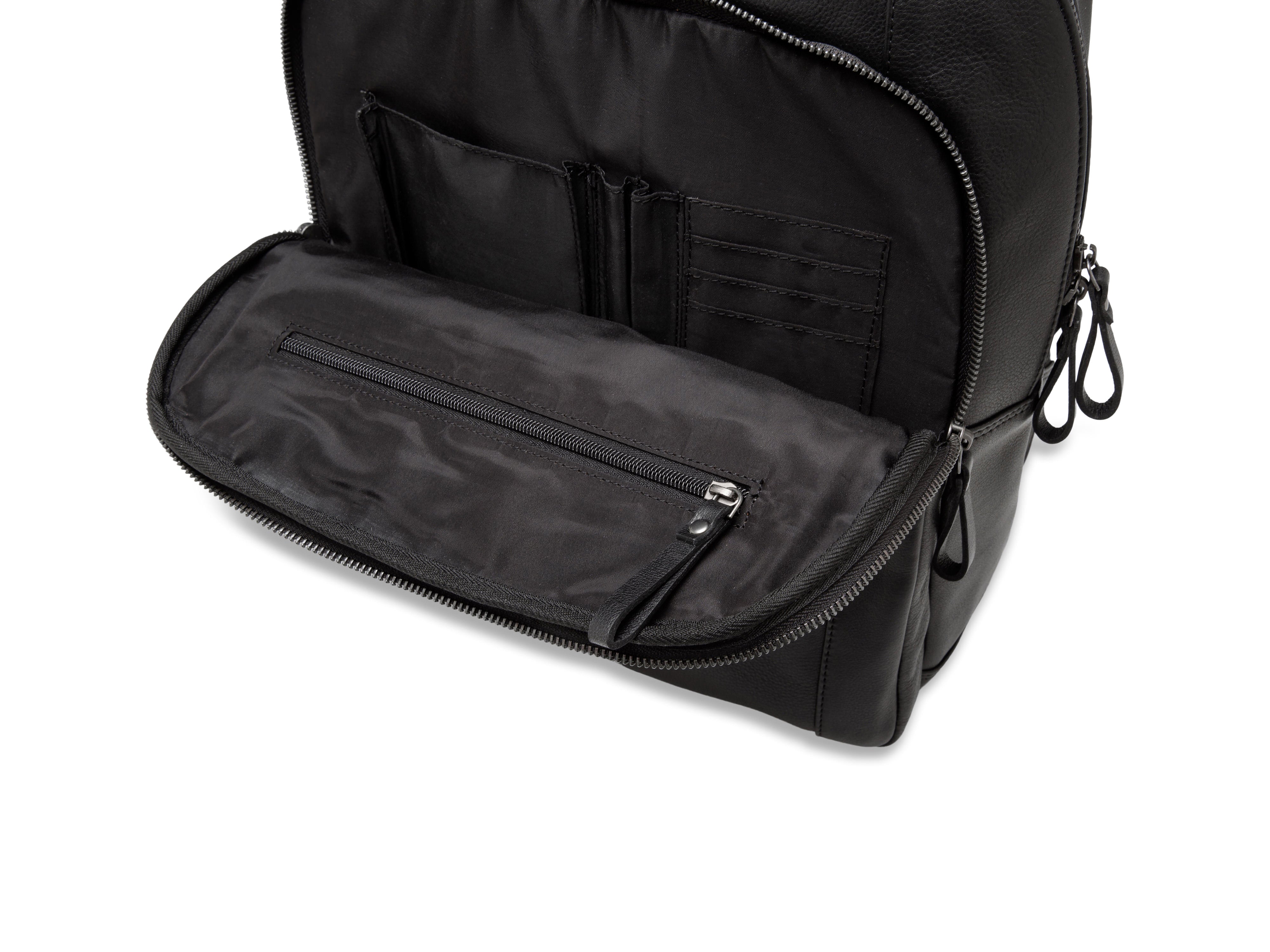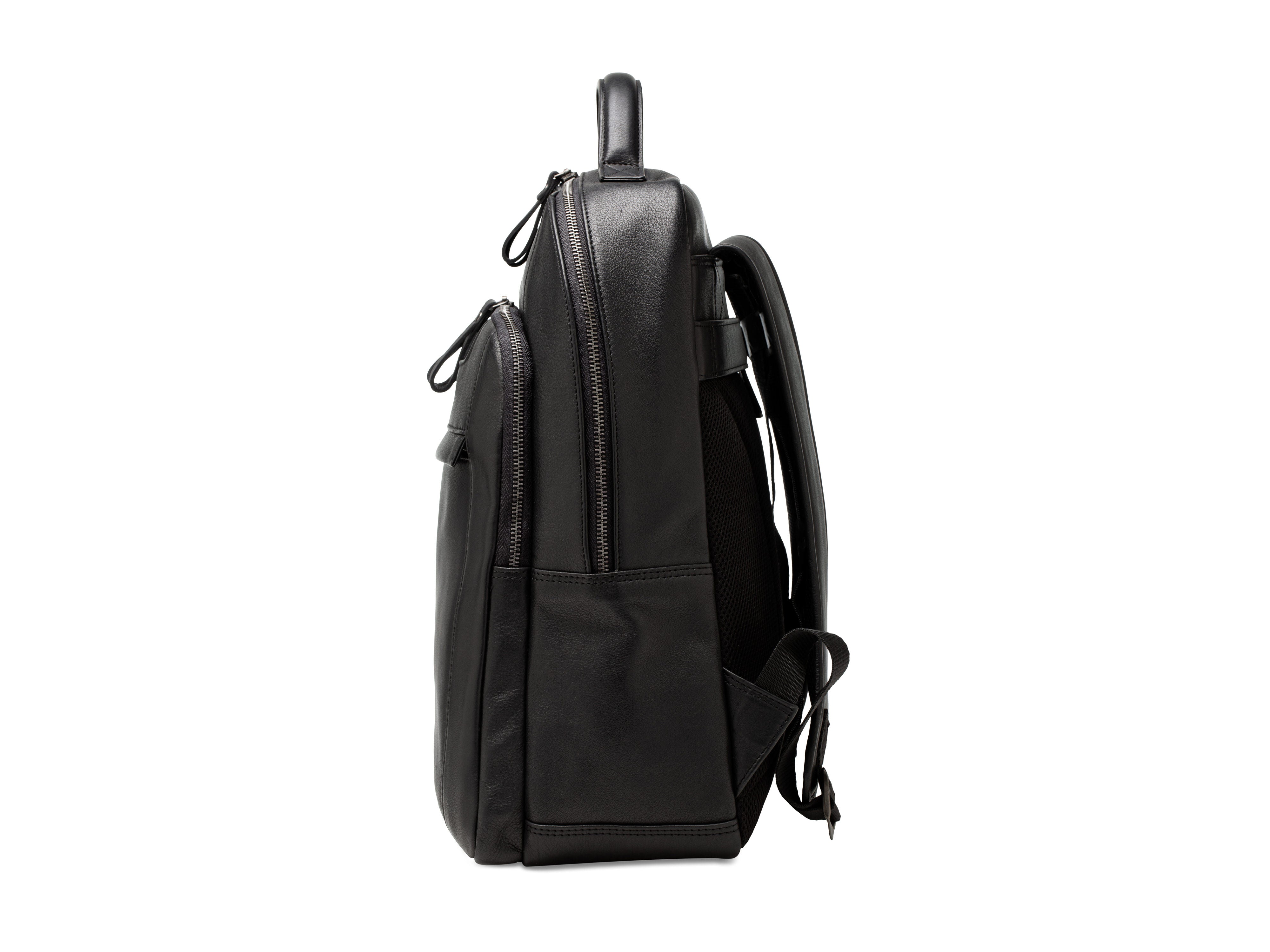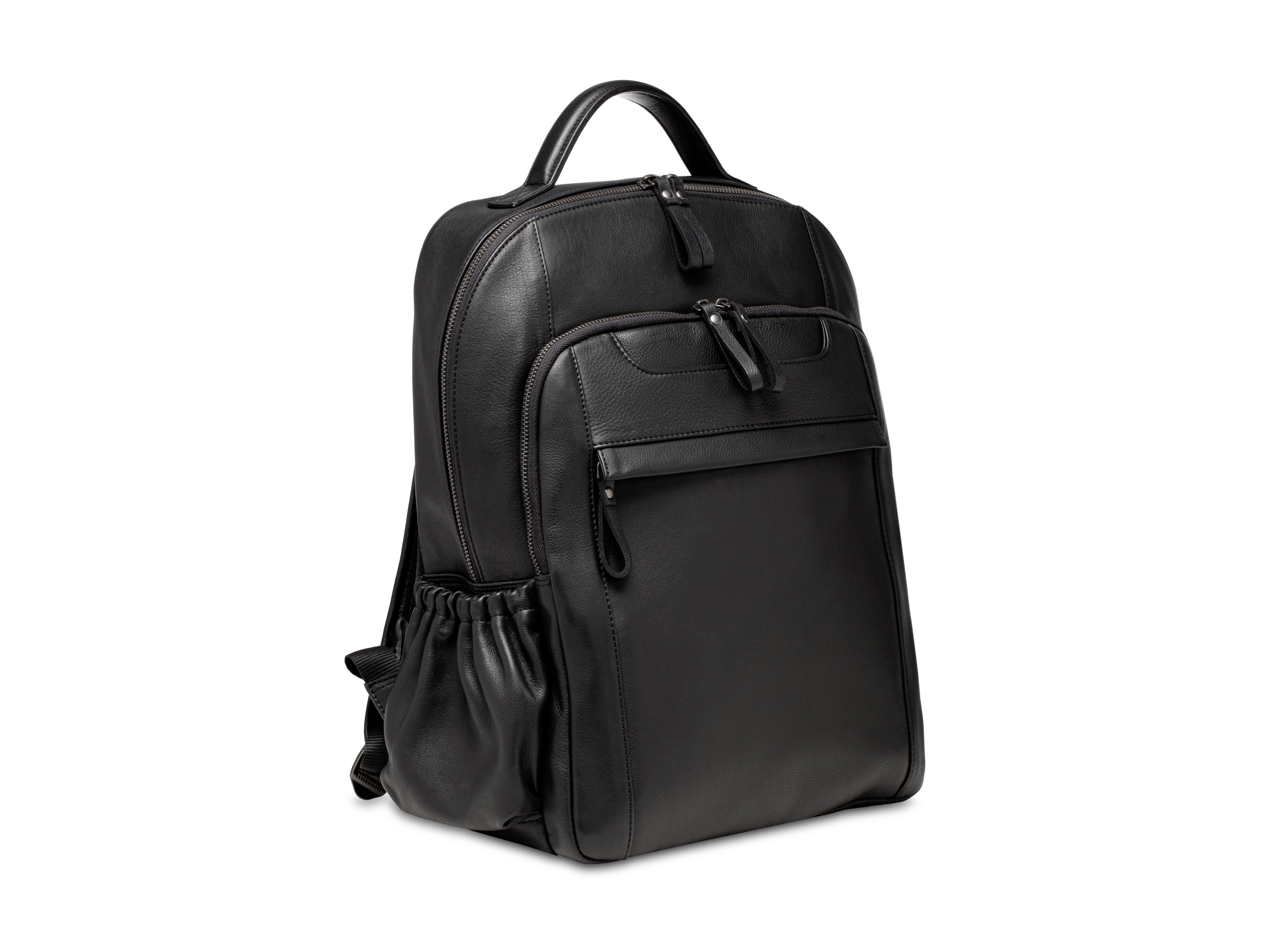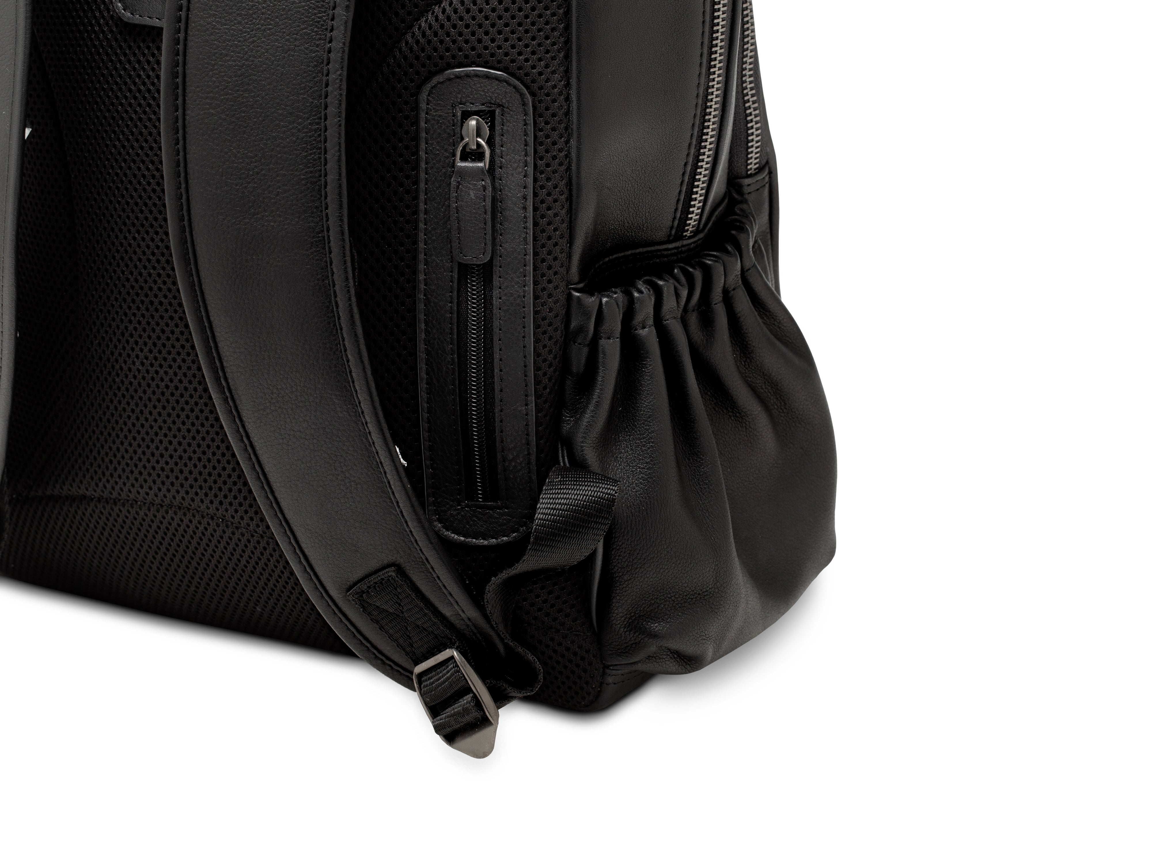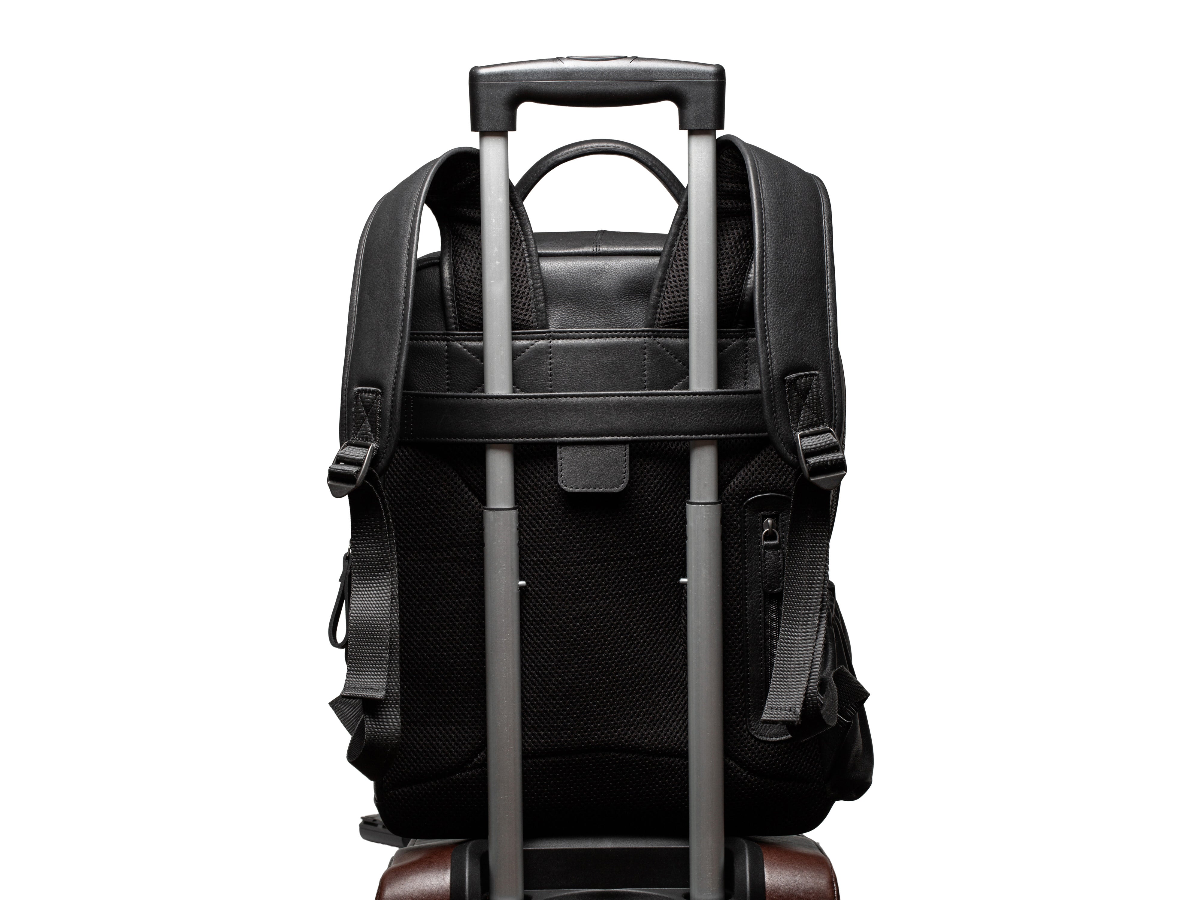 Backpacks are a necessity of life, and theres no reason you have to sacrifice style and luxury when searching for the perfect one. Lightweight and breathable due to moisture wicking Air-Flo technology, makes this backpack comfortable even after hours of travel. Need security? Our classic Nappa Backpack is full of features to keep your valuables concealed and secure, as well as quick access pockets putting your most used items in reach with no fuss. The built in trolly strap and padded top handle make attaching the bag to rolling luggage secure and comfortable, and lays flat when not in use. The RFID zip compartment is hidden from view, while you are wearing the backpack, but is close enough to access, that you don't have to remove the bag to access it. A side pouch with elastic opening is perfect for water bottles or drinks of any kind. You won't find this many features in a package this light and beautiful anywhere else.
