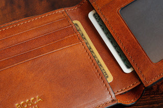 A modern classic with a Dolce twist, this new Executive I.D. Wallet does it all! With 5 card pockets, RFID blocking technology, a clear ID window, 2 full-length bill pockets and 2 hidden pockets you will be hard pressed to find something you can't carry. All that and our signature Italian hand-stained Leather to boot! Perfetto!