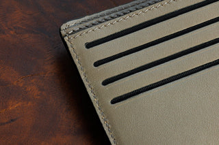 Based on our classic 8 pocket executive wallet the style 195 adds a flap out ID window. The "flap-out" design allows easy visual access to ID. The flap is removable. plus a removable slim ID window & card pocket flap. This flap hinges from the center of the wallet. The bill pocket is divided. In the Monfrini line the card pockets are all "slot" construction which keeps the wallet thin and