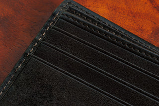 But the real beauty of this wallet is the leather. We constructed this bifold wallet out of our Nappa Vitello leather, developed to be as soft as lambs skin with the durability of cowhide. Over time it develops a rich patina, but the real appeal of this leather is the way it feels between your fingers.