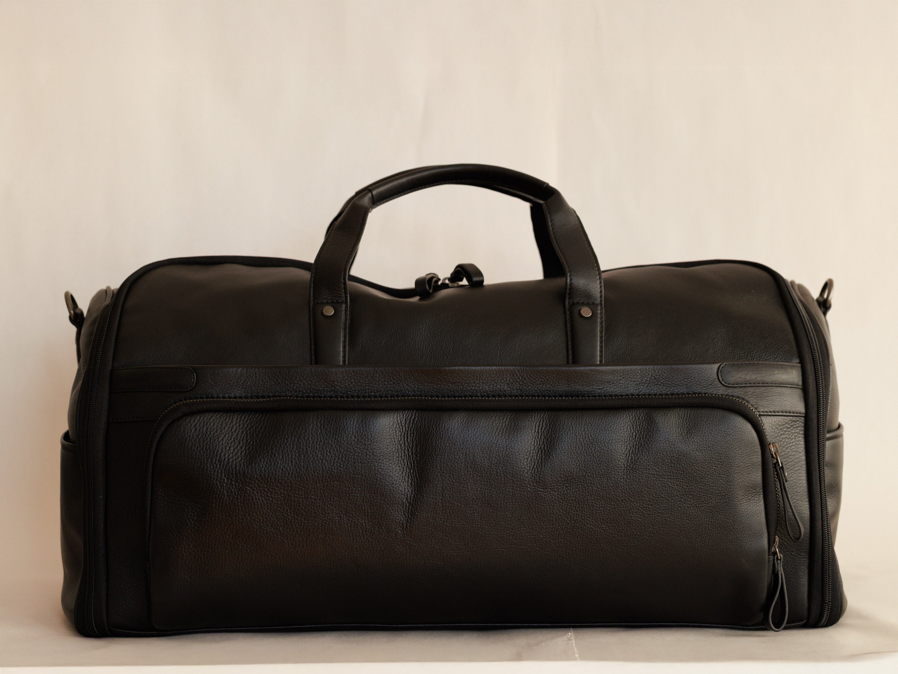 Sometimes you need to travel light, but you need to look good and impress all the same. Our lightweight hybrid duffel/garment bag checks all the boxes to get you on a plane, to your meeting with enough room left over for some play time after all that hard work. Made from our softest leather, this bag has storage and organization for any and all of your accessories and necessities. Stylish, classic, lightweight, can't beat it.