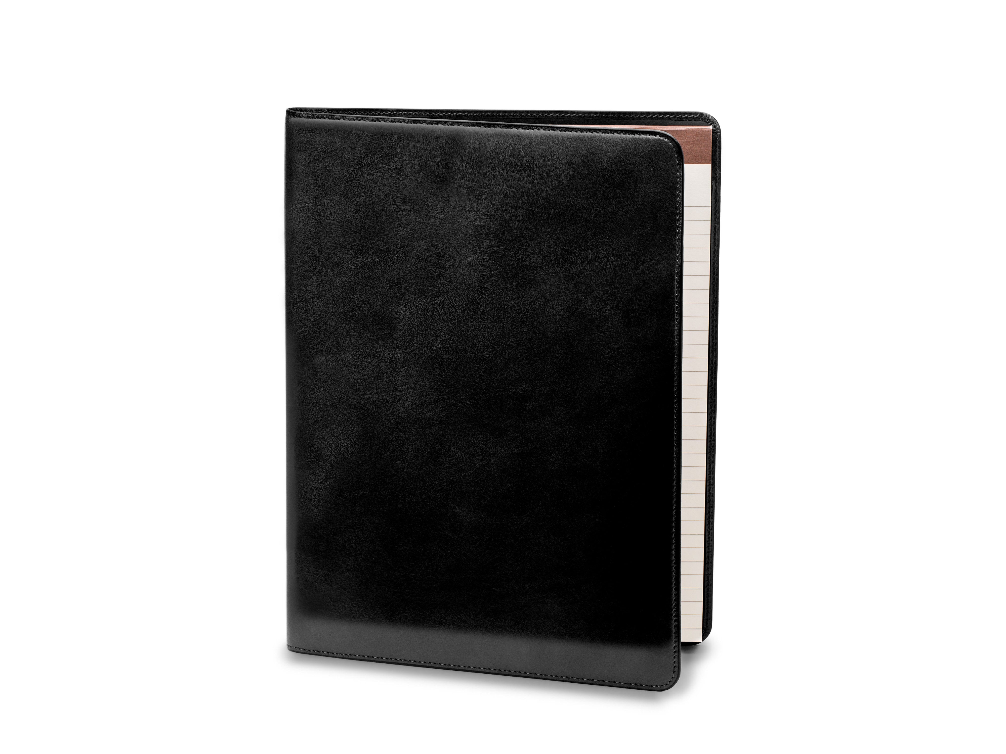 This is the granddaddy of pad portfolio covers. Our style 842, All Leather Pad Portfolio, really is a beauty. It is much like our classic Pad Portfolio cover in function – an 8 1/2 x 11" pad on the right, a slot for a pen in the center and a flap pocket with places for cards and an identification on the left – but it is leather-lined. Fabric under pockets prevent build up of bulk. Truly a handsome piece.