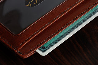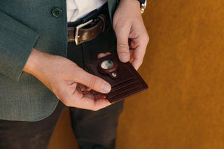 Una soluzione minimalista per carte e contanti, oltre a una tasca per l'airtag, così non dovrai mai più cercare le tue carte. Realizzato nella nostra ricca pelle vecchia tinta a mano e conciata al vegetale.