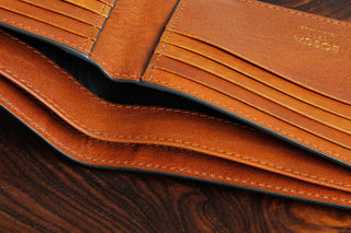 All of our signature leathers are full-grain, vegetable-tanned, and hand-stained by artisans in Italy. This process reveals the natural character of each hide and ensures that it develops a richness and depth that only grows more beautiful with time.